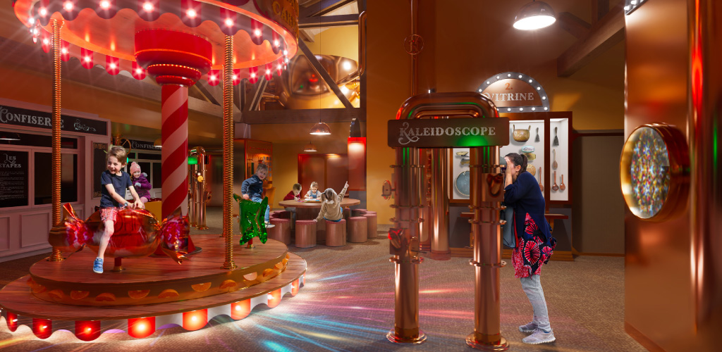 Un parcours expérientiel mêlant histoire, science et pédagogie, invite les visiteurs à découvrir les secrets du sucre et des bonbons dans un paysage scénographique évocateur, inspiré du théâtre et du cinéma où sculptures et décors peints accueillent projections, manipes et dispositifs interactifs.